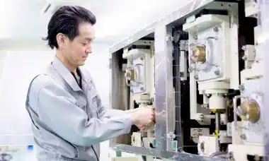 製造を始める前に装置の点検と動作確認をします。装置に異常があれば良品が作れないだけではなく、事故やケガにもつながるため、「点検」は大切な作業工程です。