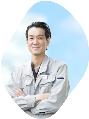 私は以前から機械装置に興味を持っており、大学では機械工学を専攻し卒業研究で銅箔基盤の引張試験を行いました。就活においては、装置メーカーであり設計から製造、納品まで一貫体制を整えている石井表記が目に留まり会社説明会に参加してみることに。そこで、若い世代が多く働きやすそうだという印象を持ち、入社を決意しました。面接では、初めは設計をやってみたいけれど、いずれは業種を問わずいろいろな仕事に携わりたいと答えた記憶があります。入社後は希望が叶い設計の部署に配属されました。入社してから19年、管理や開発、現在の仕事であるCE(カスタマーエンジニア)と様々な部署を渡り歩いてきました。CEとは、簡単に言えばお客さまに納品した機械のメンテナンスを行う部署。主に機械の保守点検、修理を行っています。