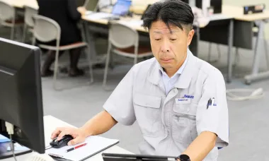 お客様へ納めた装置をメンテナンスするため、出張の日程調整や部品の見積りなど、課員の業務進捗状況を確認します。