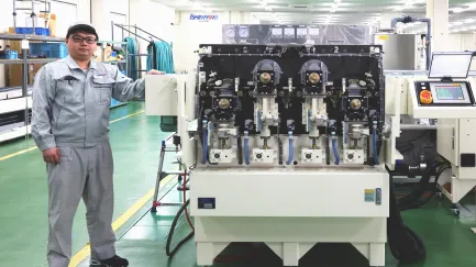 車載向けなど量産品のフィルムは、高精度カメラ付き加工機で抜き加工を行います。