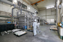 柔軟性があり折り曲げることができるフレキシブル基板の材料に銅メッキをするための実際の装置を設置しています。この装置はUP/DOWN方式により省スペース化を実現しています。